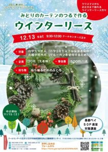 みどりのカーテンで育てたつるを利用し、クリスマスからお正月まで活用できるウインターリースを作ります。